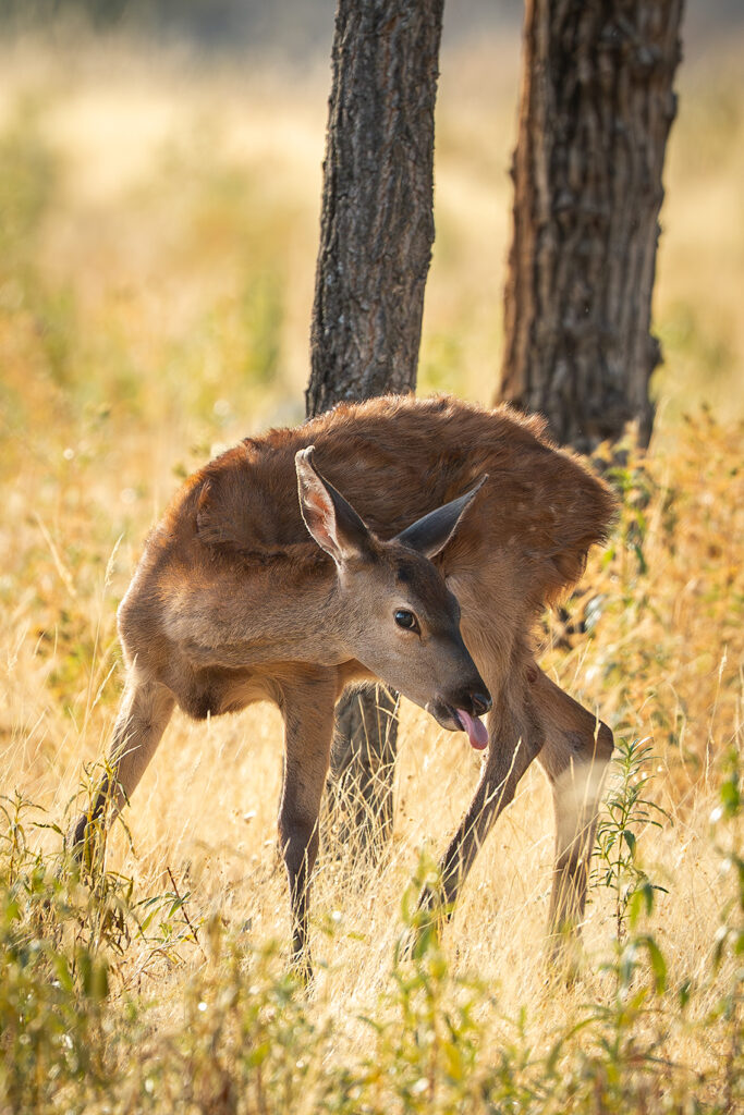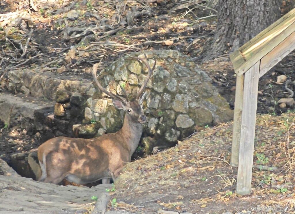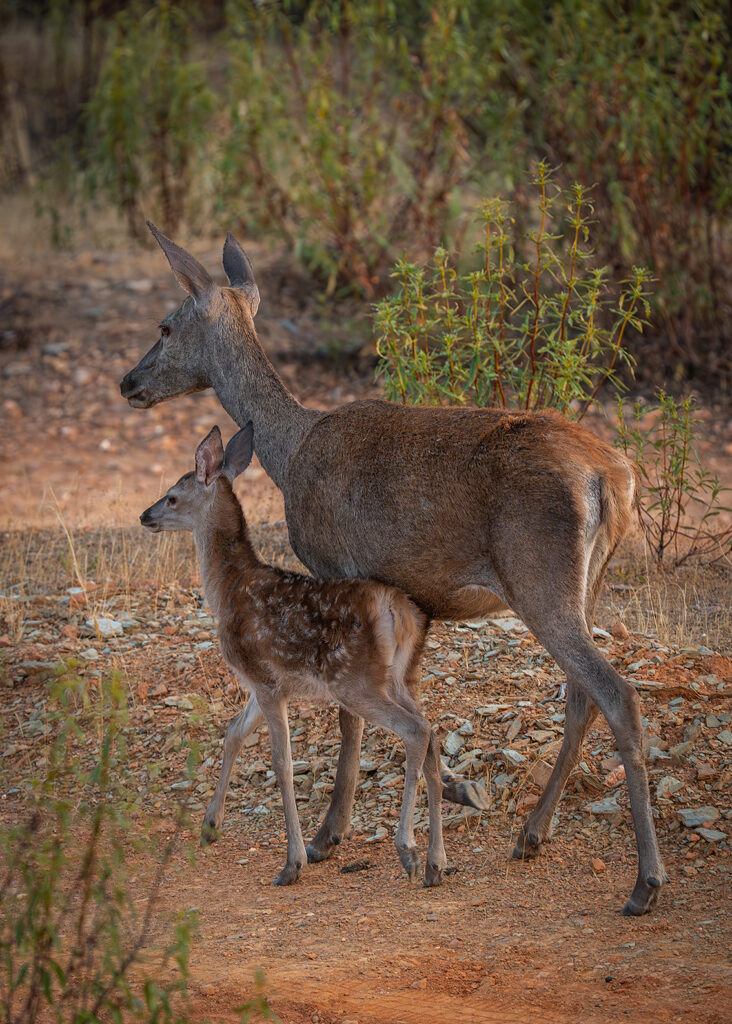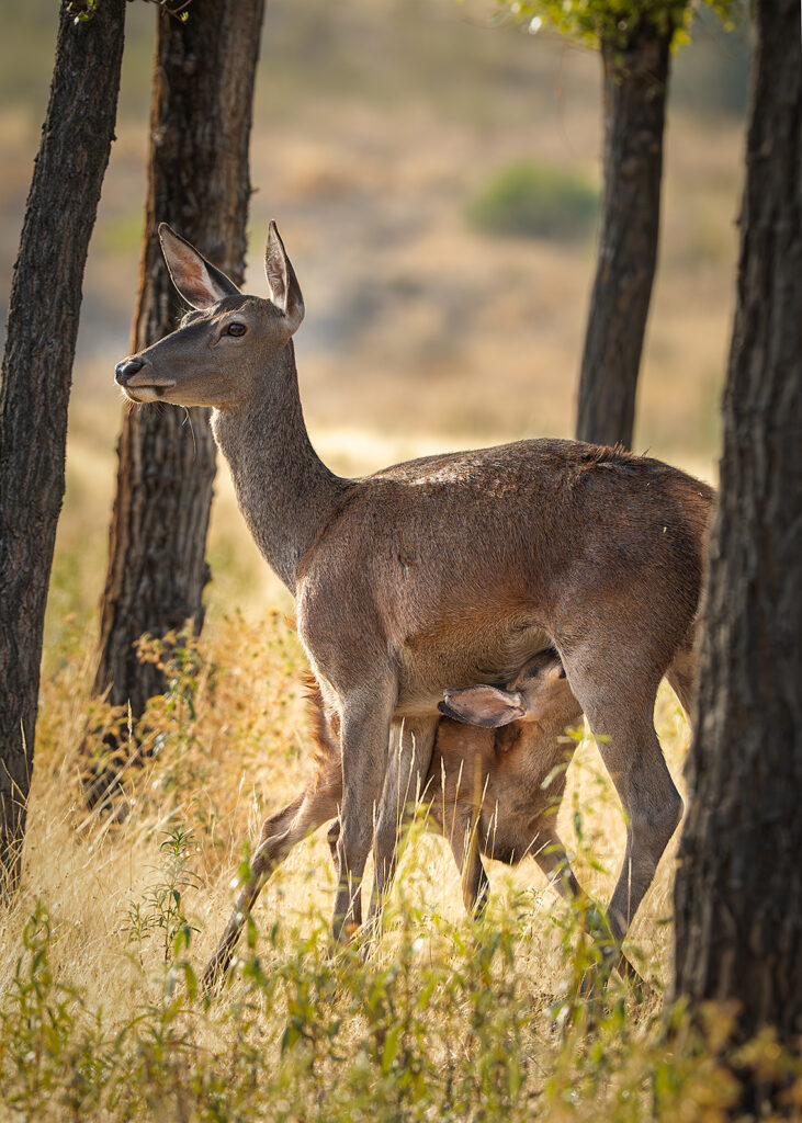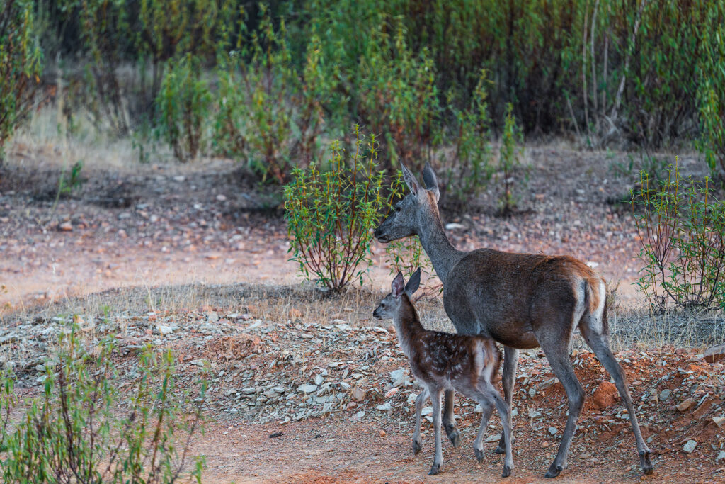 Y entonces aparecieron los primeros: una cierva con su cría, moviéndose con sigilo entre los matorrales. Más lejos, otro pequeño grupo pastaba tranquilo.